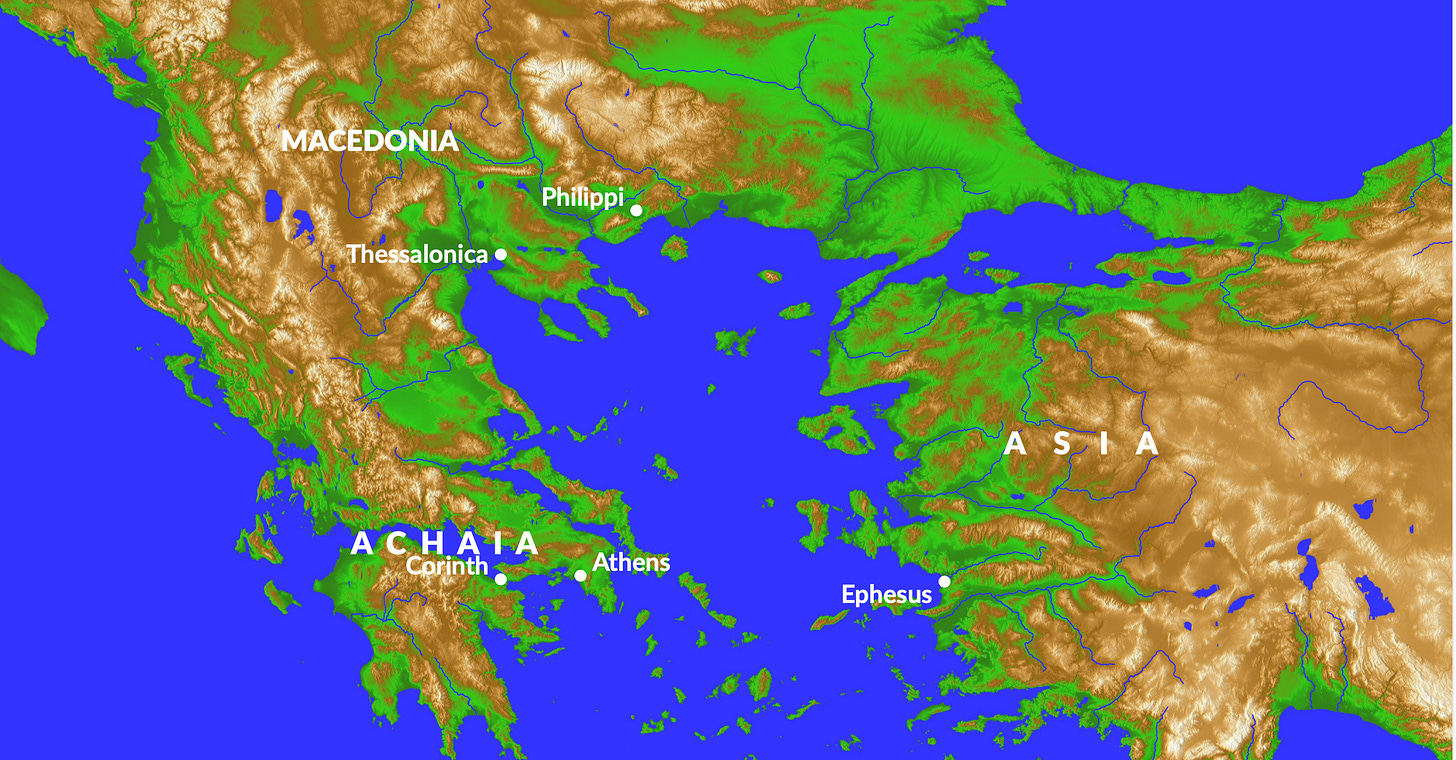 From Ephesus, Paul could have sailed directly to Macedonia, or he could have sailed to Achaia and then traveled to Macedonia by land.