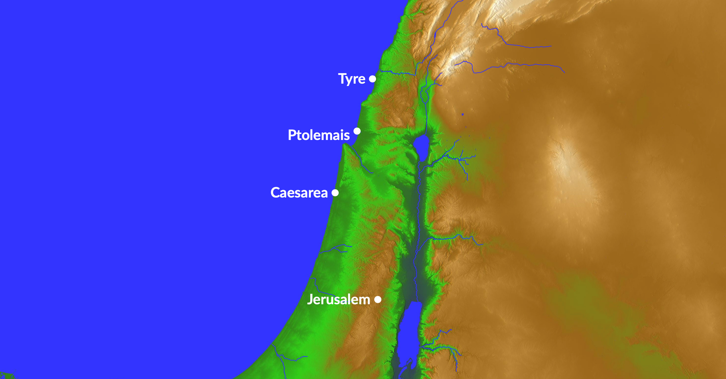 When we stopped reading yesterday, we were in the middle of reading about Paul’s journey from Greece to Judea. Paul was hoping to arrive in Jerusalem before Pentecost. After crossing the Mediterranean Sea, Paul and his companions landed at Tyre, where they visited the disciples for seven days. before re-boarding their ship to resume their journey.