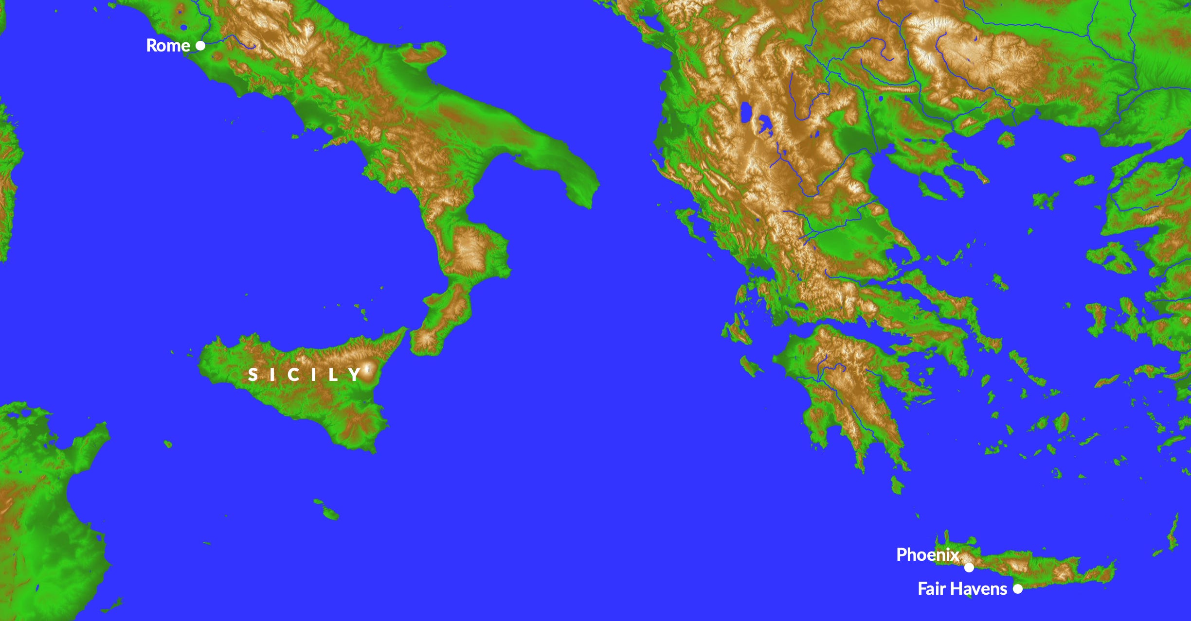 Malta is an island south of Sicily. They had left port in Fair Havens, hoping to make it to Phoenix, but they were caught in a storm which eventually deposited them in Malta. Fortunately for them, the storm had taken them towards their destination, which was Rome.