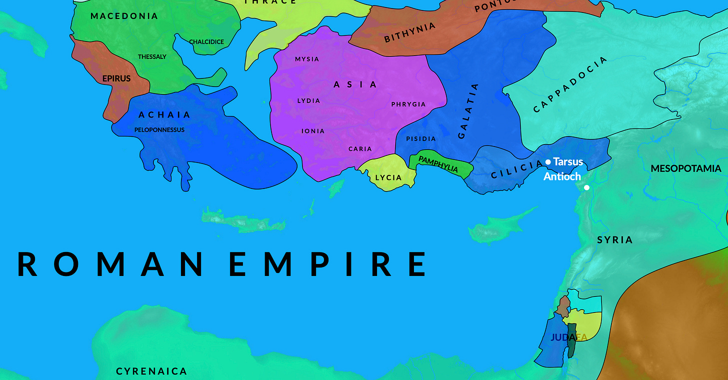 This map shows the various Roman provinces of the 1st century AD. The province of Galatia was in an area known today as the country of Turkey.