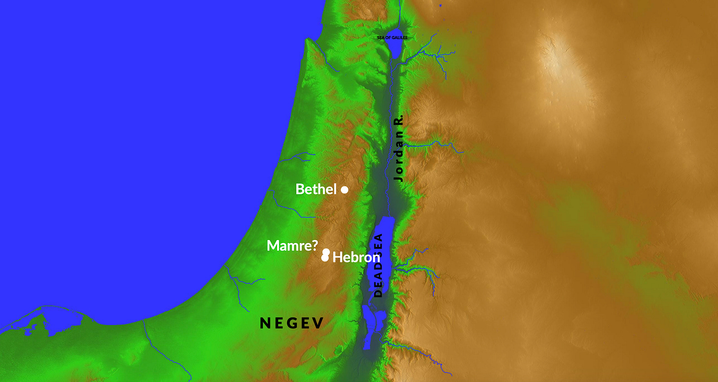 After a brief sojourn in Egypt, Abraham and Lot traveled to Bethel, which sits on top of a mountain range. Between the two of them, they had so much cattle and wealth that they decided to split. Abraham stayed up on the mountain while Lot went down into the Jordan River Valley and went to Sodom.